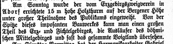 durch Errichtung von Aussichtstürmen großes Interesse erweckt hatte, veranlaßte die neugegründete Adorfer