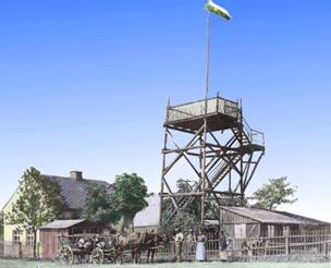 Turm wurde zur Erntezeit des Jahres 1882 auf der Höhe (607m) vom