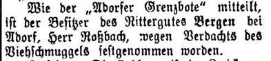 Bergen bei Adorf, Herr Roßbach, wegen des Verdachtes des Viehschmuggels